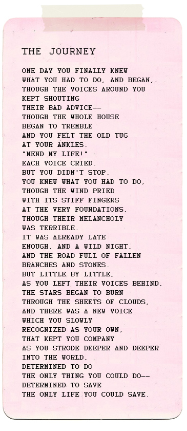 The poetry of Mary Oliver, who was born September 10. 1935. Copyright owned by others.